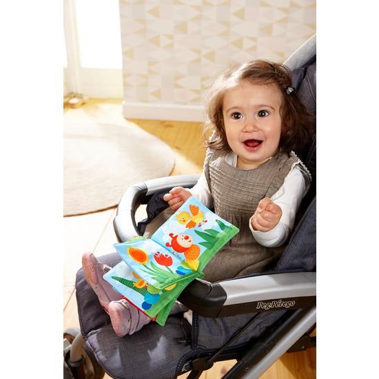 Mit weicher, abnehmbarer Klettschlaufe zum Befestigen an Buggy, Kleidung und Bettchen ist dieses Buch zum Anbeißen erlaubt. Elemente mit Noppen dienen zur Entspannung der Kaumuskulatur.
