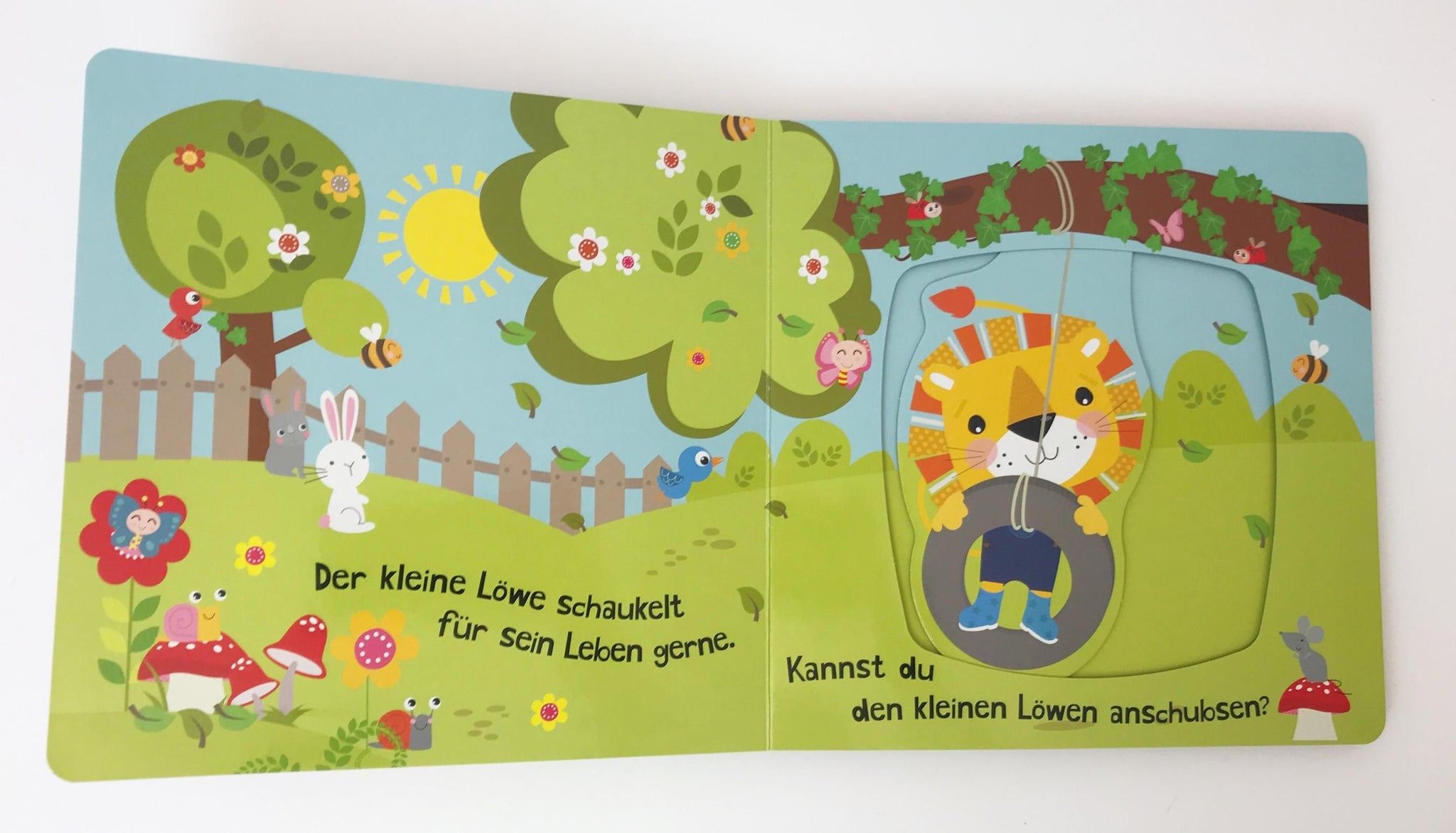 Stabiles Pappenbuch mit vielen Klappen und Schiebeelementen. Schult die Motorik und Konzentrationsfähigkeit.
