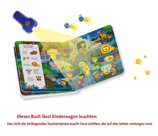 Bei Nacht gibt es viel zu entdecken: Wo schlafen die Tiere und wer wird erst wach, wenn der Mond aufgeht? Wie durch Zauberei erscheinen im Licht der Taschenlampe viele spannende Tiere und Gegenstände. Kleine Such-Bilder und kurze, animierende Texte fordern zum genauen Hinsehen, Entdecken und Staunen auf.