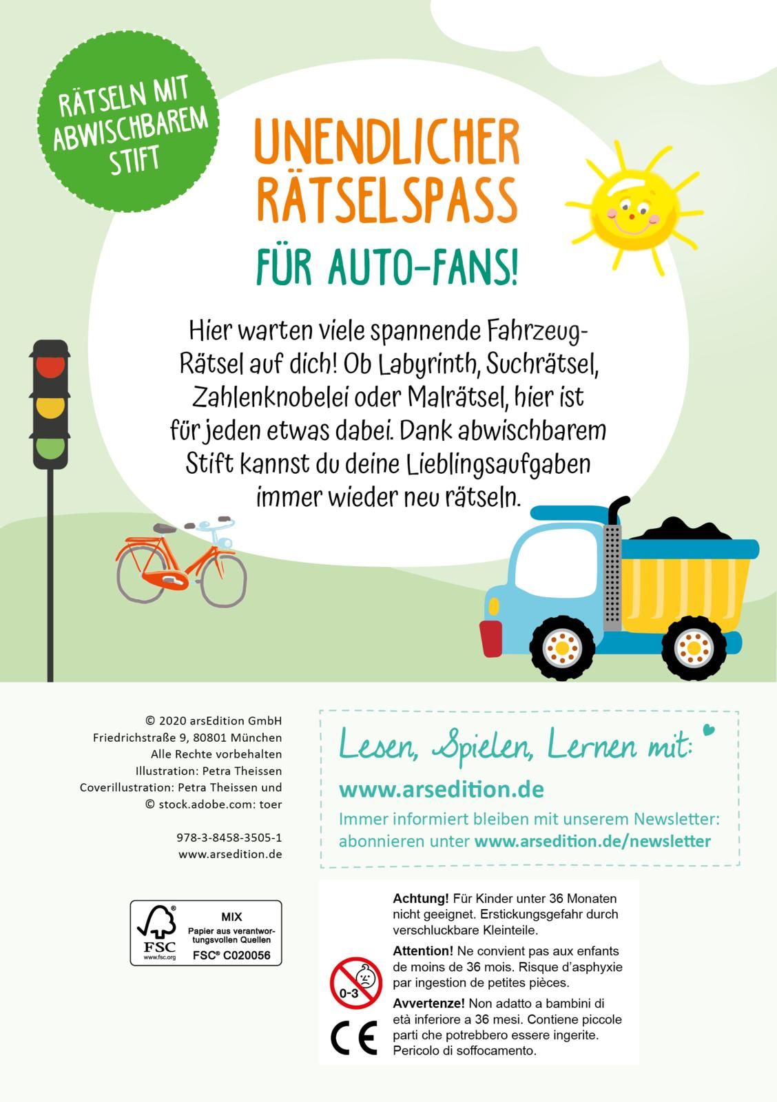 Dem Heft liegt ein abwischbarer Stift bei, mit dem die Kinder die niedlichen Rätsel rund um Polizeitauto, Lkw & Co. immer wieder neu lösen können. Ist eine Lösung falsch, lässt sich die Tinte ganz ohne Wasser oder Reinigungsmittel nur mit einem Taschentuch entfernen – einfach ruckzuck weggewischt!